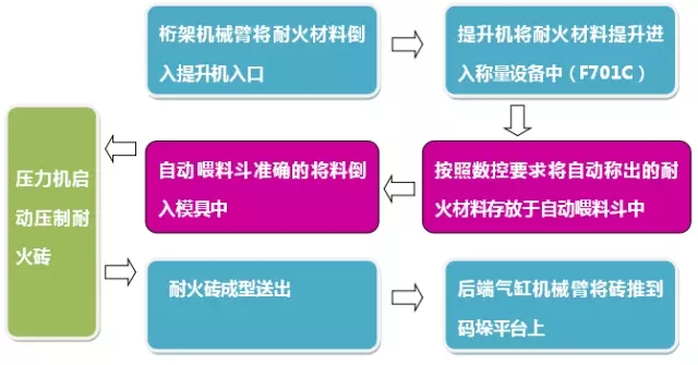 國內某大型耐火材料公司是耐火磚行業的領頭羊之一,憑借優質的鋁鎂型磚占據了大量的市場份額。由于近年形勢較好,市場需求龐大,但產量無法滿足日益增長的需求。公司高層提出:以改革促發展,以創新求進步的戰略,將定型鋁鎂磚半自動化生產線改造為全自動化生產線。